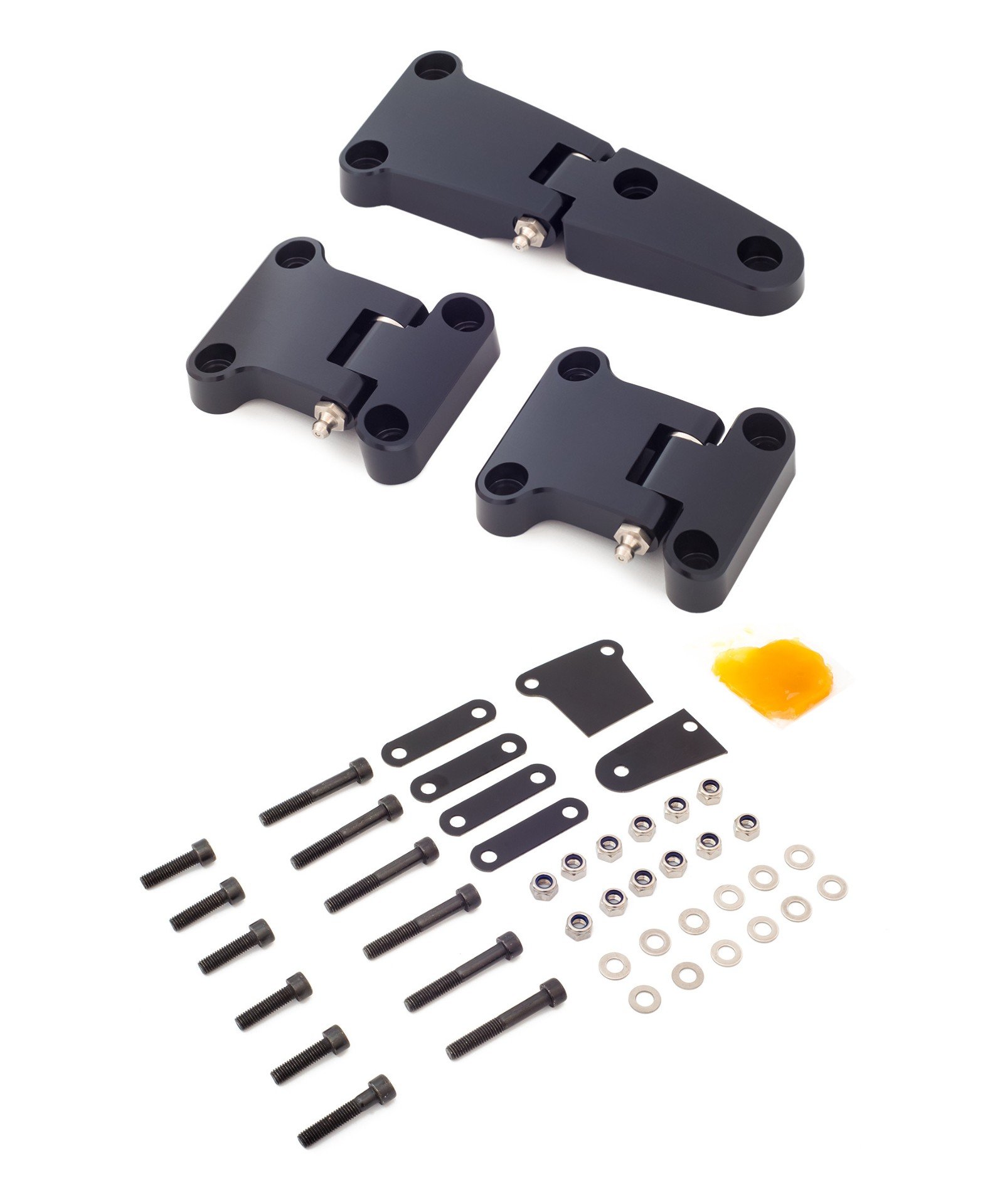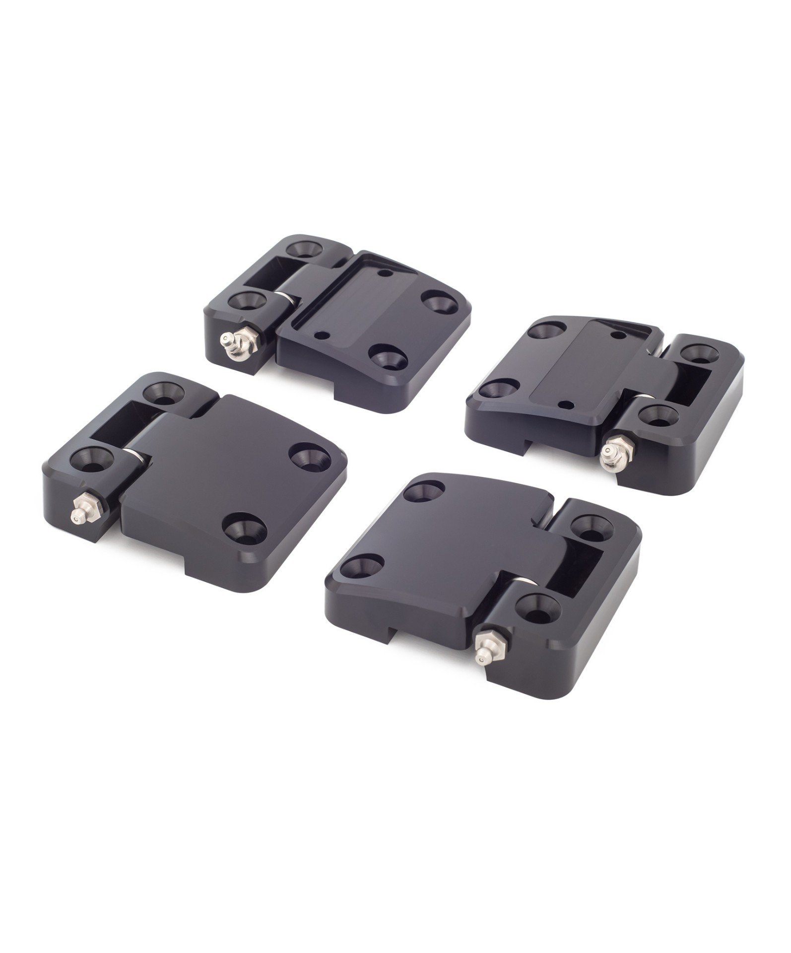 Montage-Kit muss separat erworben werden. Wahlweiße Edelstahl- oder Edelstahl-Schwarz. Hier findest du unser Montage-Kit. - Defender Hecktürscharniere Standard (3 Stück) mit Abschmiernippel