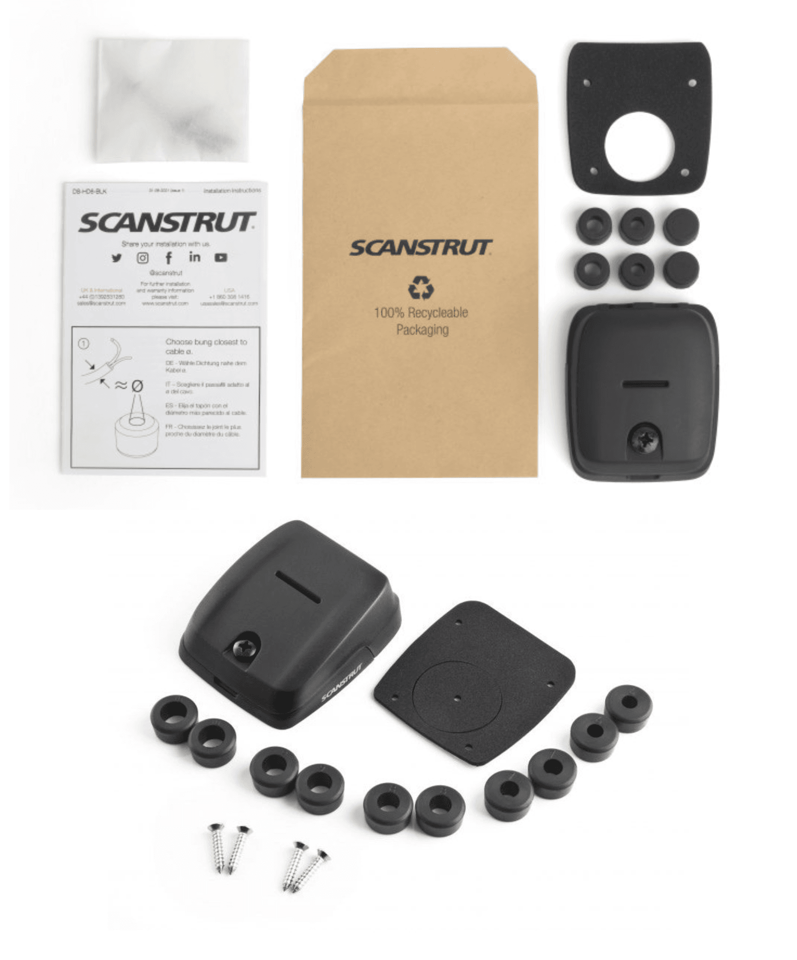 • Lieferumfang: Kabeldurchführung, Premium-3M-Dichtung, Edelstahlschrauben, 2 Blindstopfen